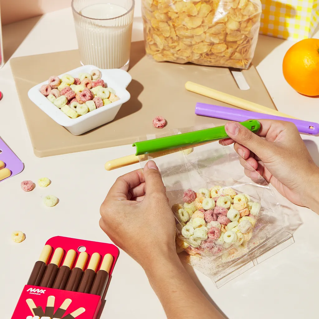 - 防止零食從袋子裡溢出。