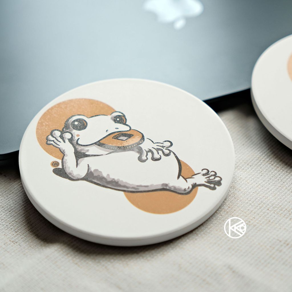 金蟾躺賺|MIT招財陶瓷吸水杯墊-藝術家 KOKO