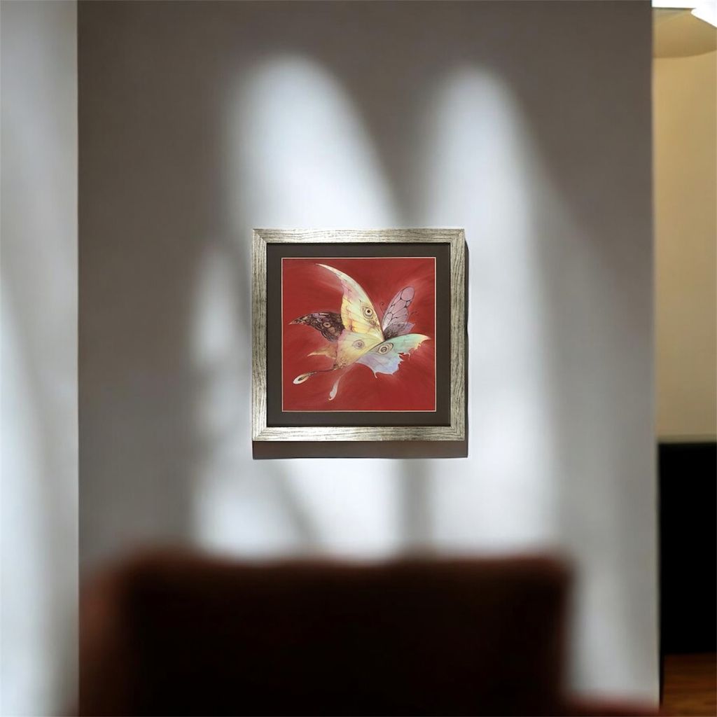 飛蛾,這種常被視為不潔的生物,長期活在黑暗的隱喻之下,然而當凝視牠翅膀拍動時的殘影與紋理時,卻感受到一種極端的美感與秩序,色彩與形狀的交疊之中,翅膀彼此穿插、纏繞的構圖,象徵著個體的多樣性與交會。