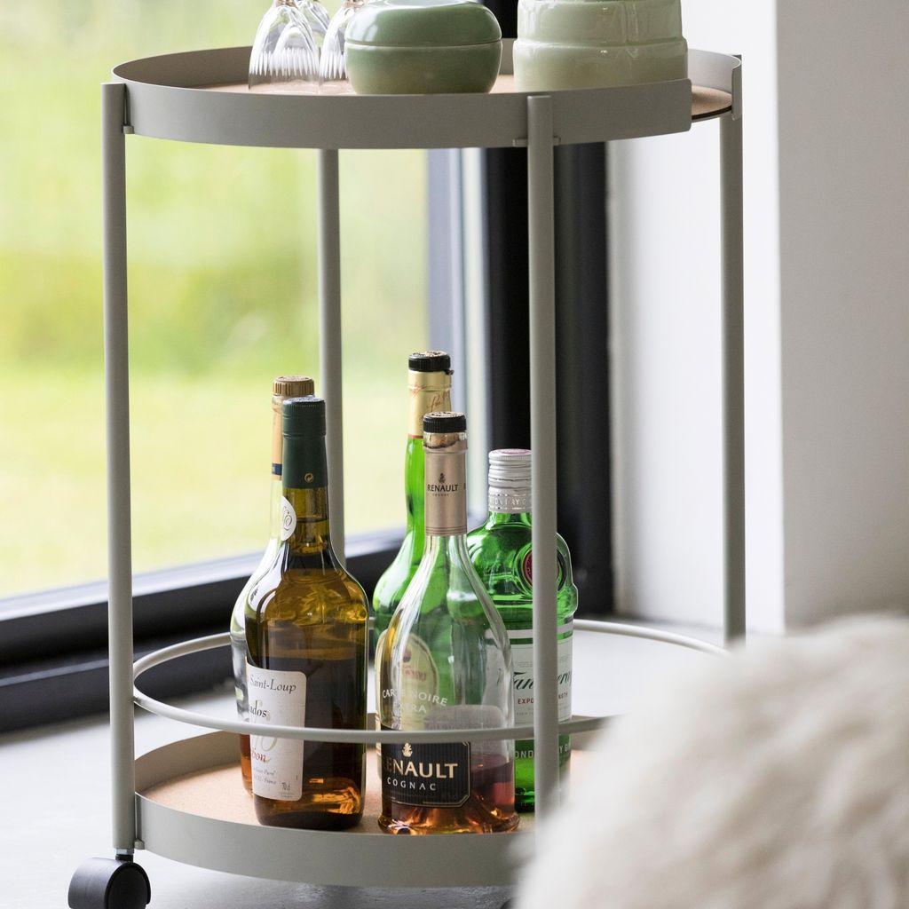 充滿現代感的造型設計,圓形款式兩層的空間可當作酒櫃使用,下方可擺放酒類,上方則便於放酒杯、調酒器具與食材,就像一個移動式的吧檯,當家中有客人來訪時,絕對是最吸睛且實用的家具之一。