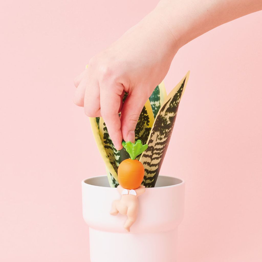 頭戴植物帽子 像好奇的孩子一樣微微斜著頭